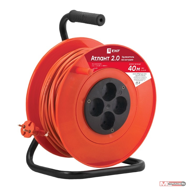 EKF Удлинители силовые EKF UKA02-06-275-4-40 Удлинитель на катушке "Атлант 2.0" 4 гнезда 40м без заземления ПВС 2*0,75 6А/1,3кВт PROxima