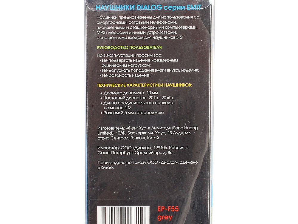 Наушники EP-F55 GREY Dialog серая [EP-F55GREY] | НИКС Екатеринбург