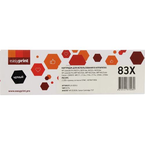 Расходные материалы Easyprint CF283X/Cartridge 737 Картридж универсальный (LH-83X U) для HP LJ Pro M201dw/202dw/225dw/Canon i-SENSYS MF211/212/226/229 (2400 стр.) с чипом [LH-83XU]