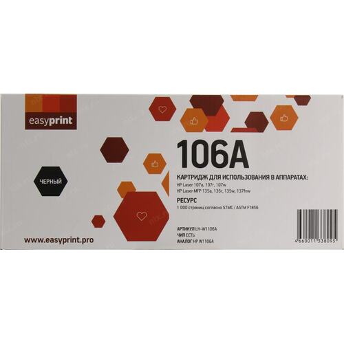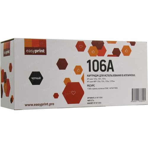 Расходные материалы Easyprint LH-W1106A картридж для HP W1106A/ Laser 107a/107r/107w/MFP 135a/135r/135w/137fnw (1000 стр.) черный, с чипом