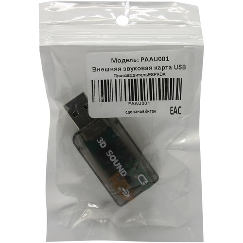 Звуковая карта Espada <PAAU001> USB адаптер для наушников с микрофоном