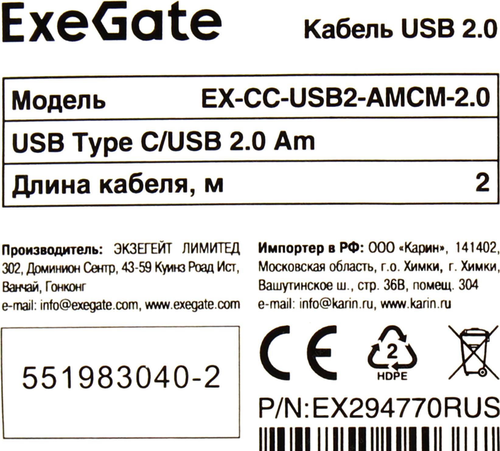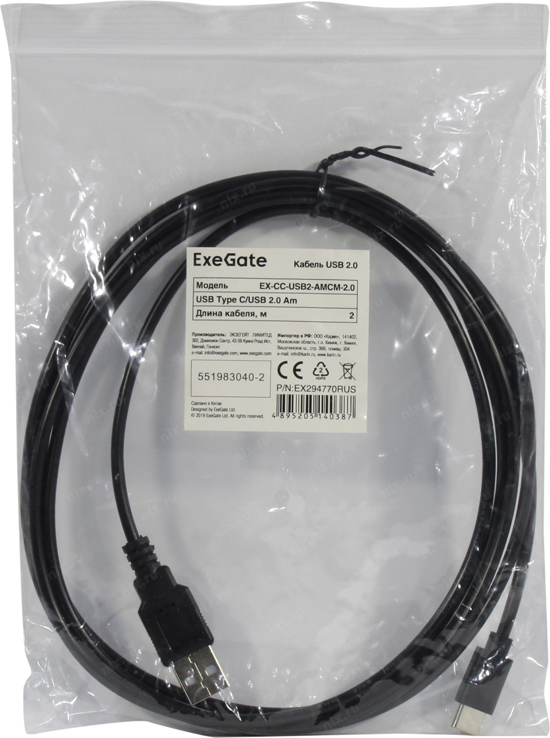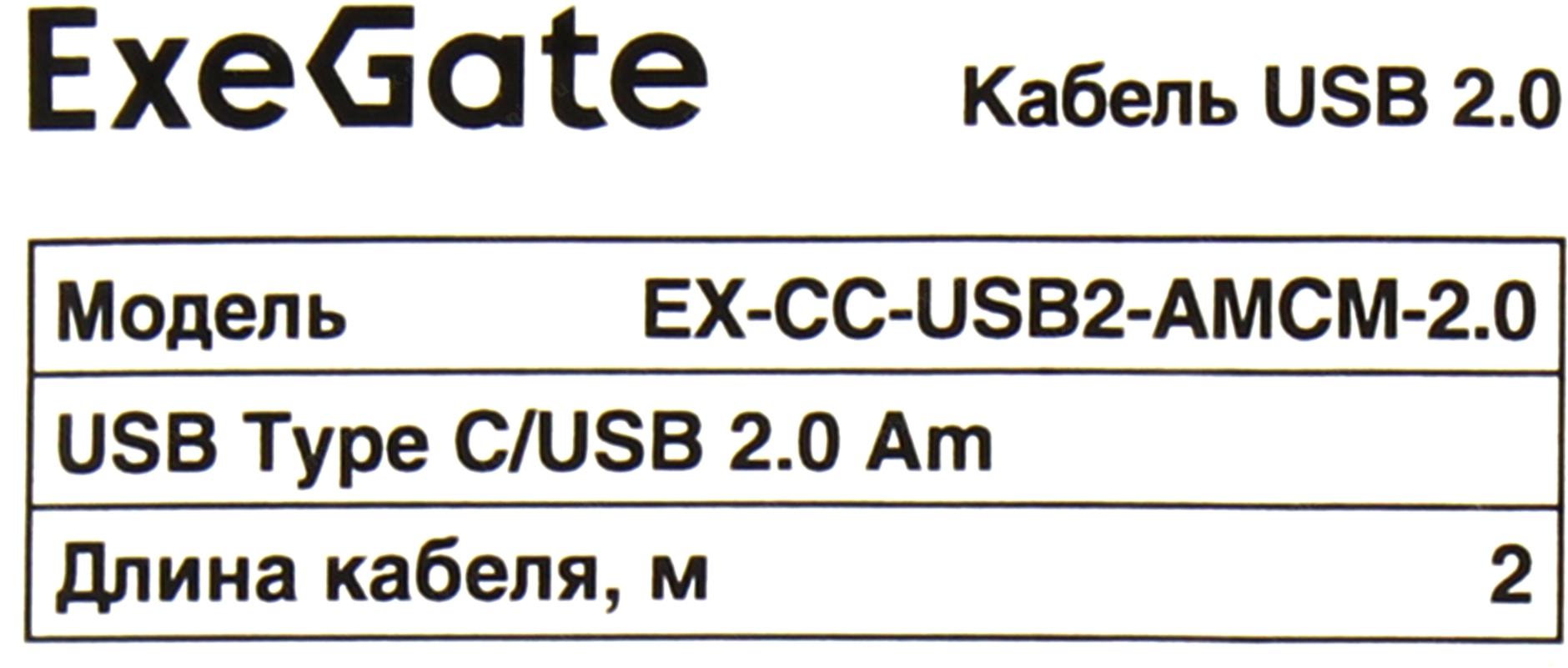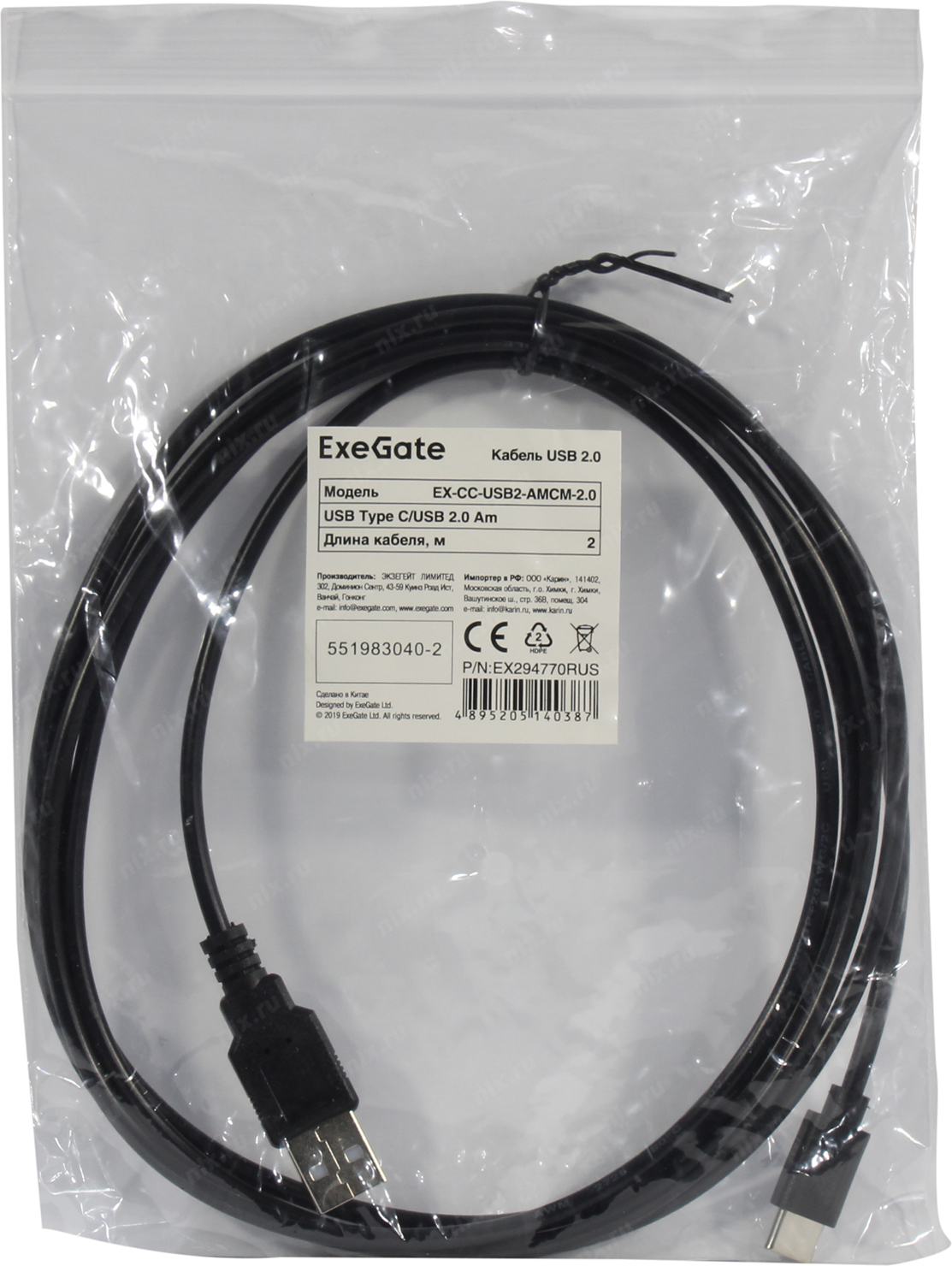 ExeGate < EX-CC-USB2-AMCM-2.0> Кабель USB 2.0 AM--> USB-C 2м < EX294770RUS>