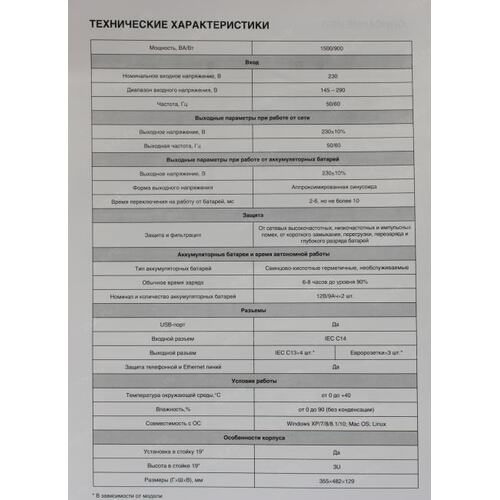 Есть;;Входное/выходное напряжение, режим работы ИБП, остаточный заряд батареи ИБП, мощность нагрузки, неисправность ИБП
