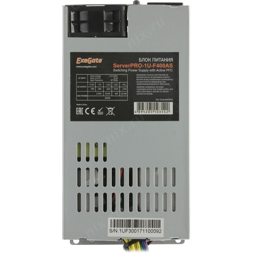 Блок питания Exegate EX264940RUS Серверный БП 400W <ServerPRO-1U-F400AS> APFC, унив. для Flex1U, 24pin, 4pin,3xSATA, 2xIDE