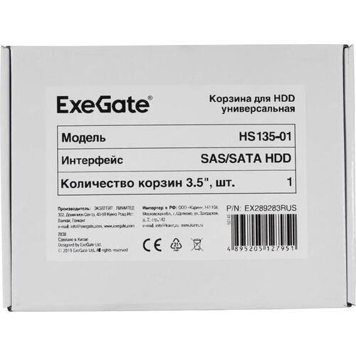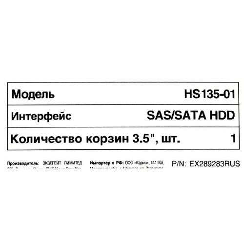 Опции к серверам Exegate EX289283RUS Корзина для HDD HS135-01 (универсальная, на 1*3,5" SATA/SAS HDD, занимает 1*5,25" отсек)