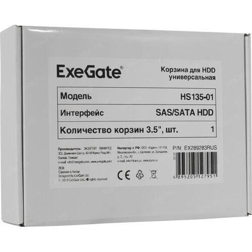 Опции к серверам Exegate EX289283RUS Корзина для HDD HS135-01 (универсальная, на 1*3,5" SATA/SAS HDD, занимает 1*5,25" отсек) | НИКС Екатеринбург