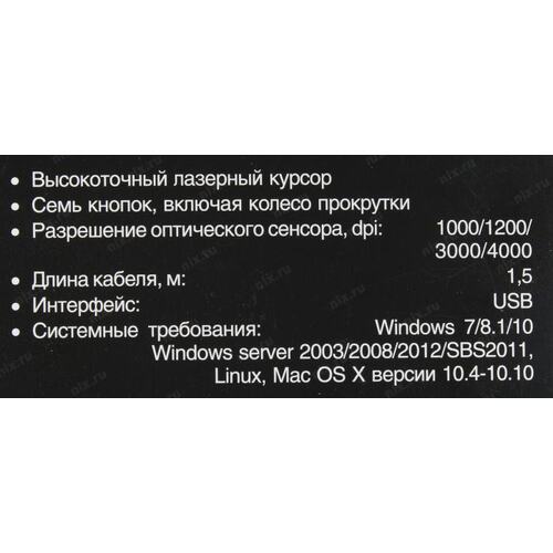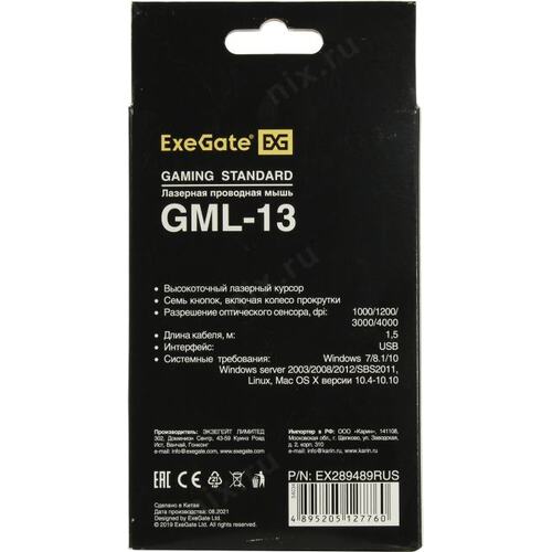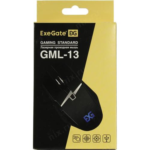 Мыши Exegate EX289489RUS Мышь ExeGate Gaming Standard Laser GML-13 (USB, лазерная, 1000/1200/3000/4000 dpi, 8 кнопок и колесо прокрутки, длина кабеля 1,5м, черная, Color box) | НИКС Екатеринбург