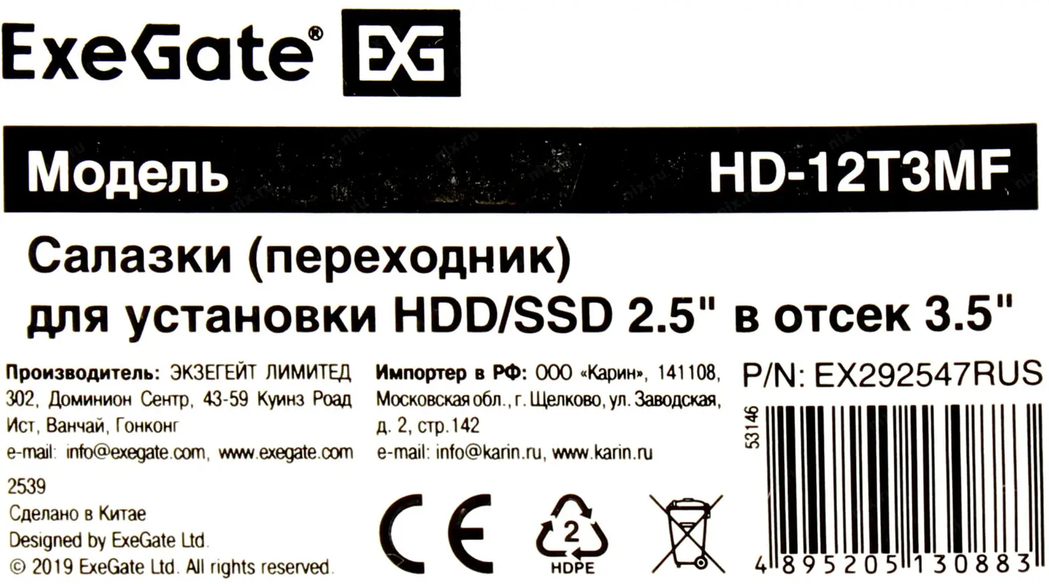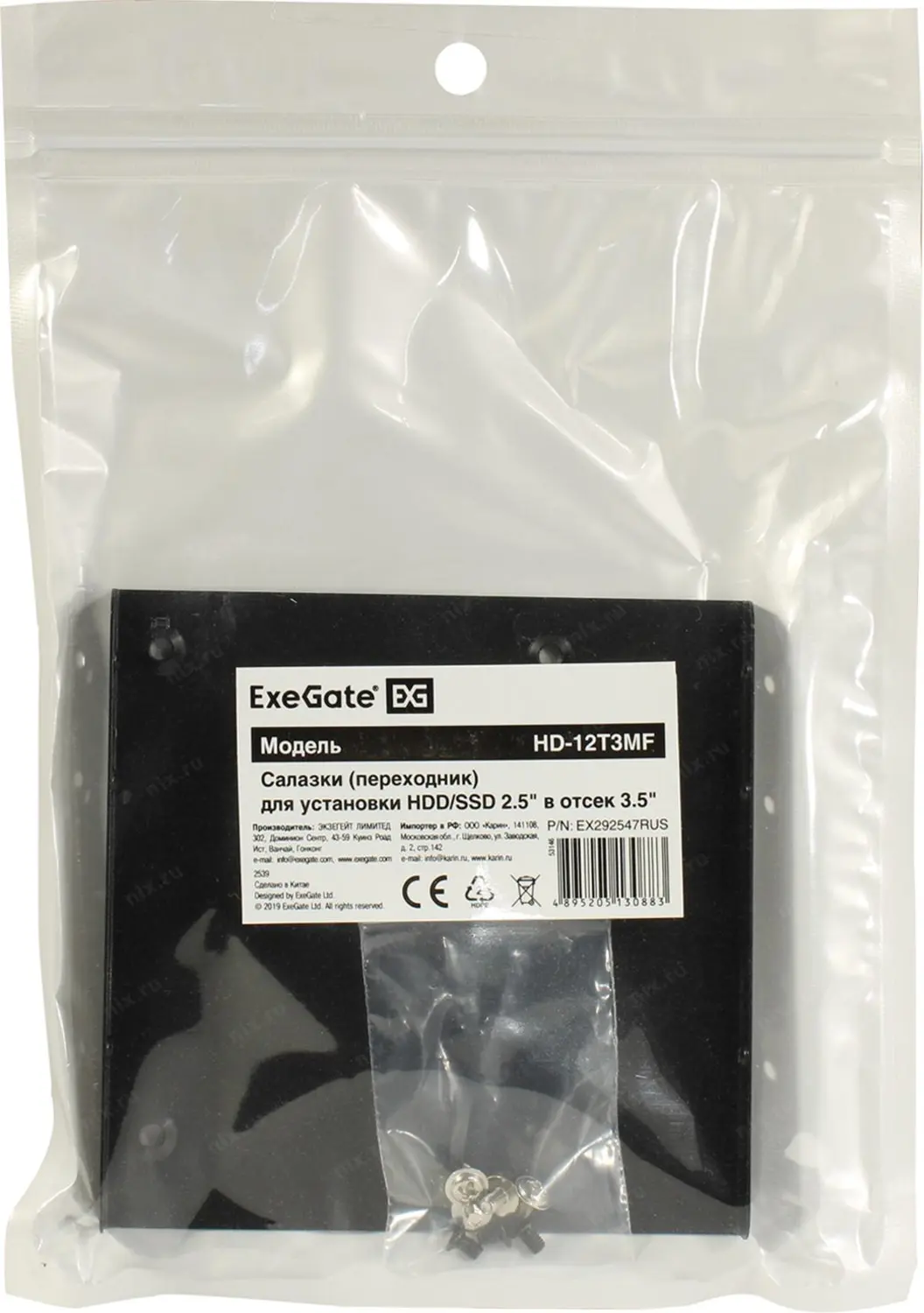 Рельсы для всех видов корпусов Exegate EX292547RUS Салазки (переходник) ExeGate HD-12T3MF металлические для установки HDD/SSD 2.5" в отсек 3.5"