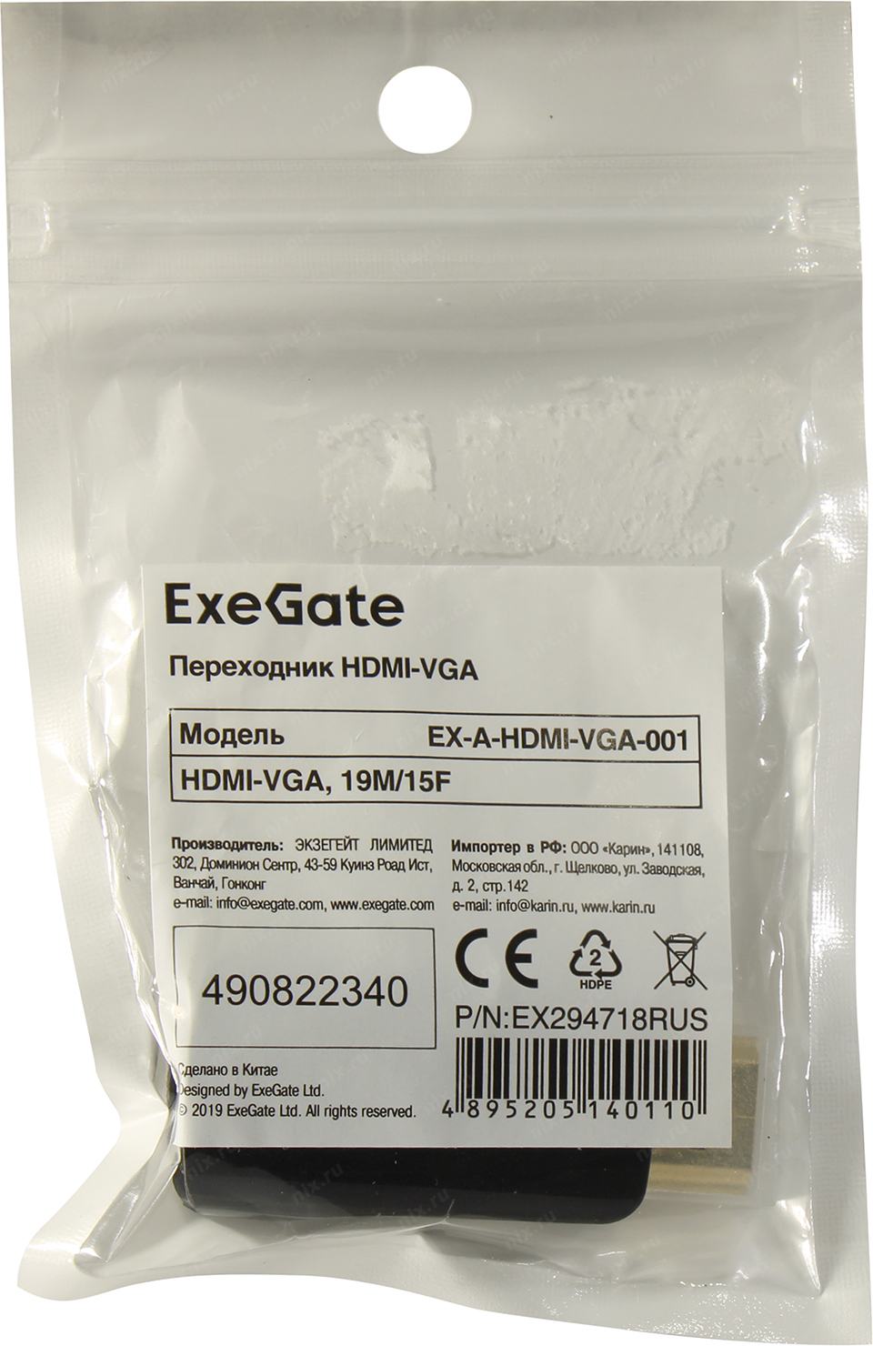 Переходник Exegate EX294718RUS Переходник HDMI-VGA ExeGate EX-A-HDMI-VGA-001 (19M/15F)