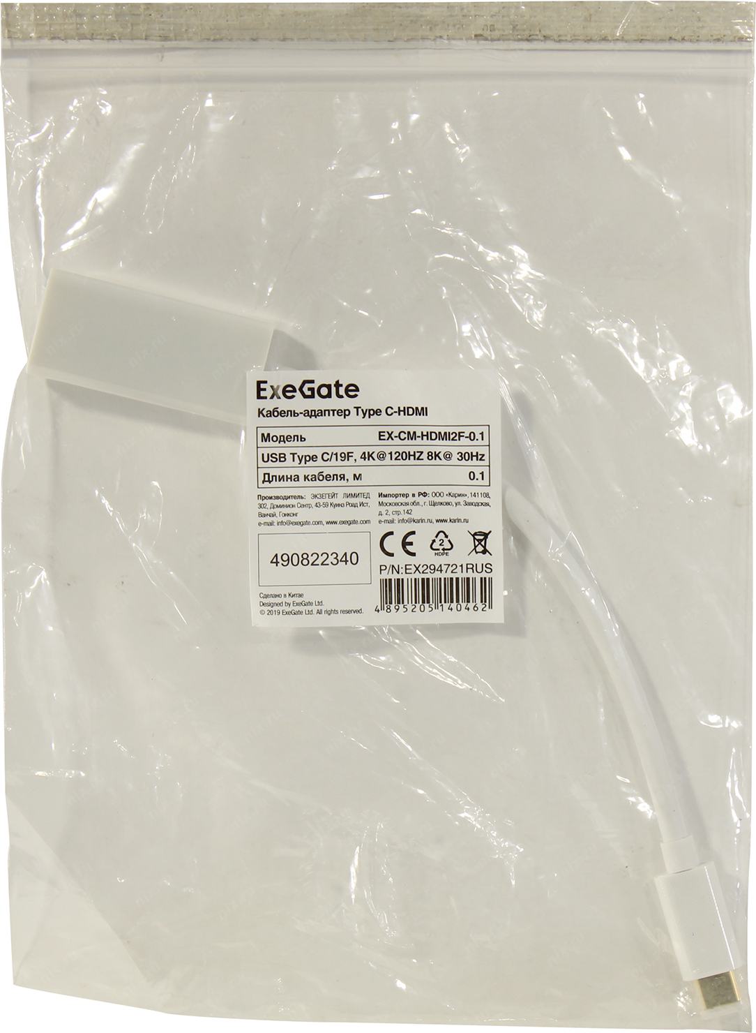 Переходник Exegate EX294721RUS Кабель-адаптер Type C-HDMI ExeGate EX-CM-HDMI2F-0.1 (USB Type C/19F, 4K@120HZ 8K@ 30Hz, 0,1м)