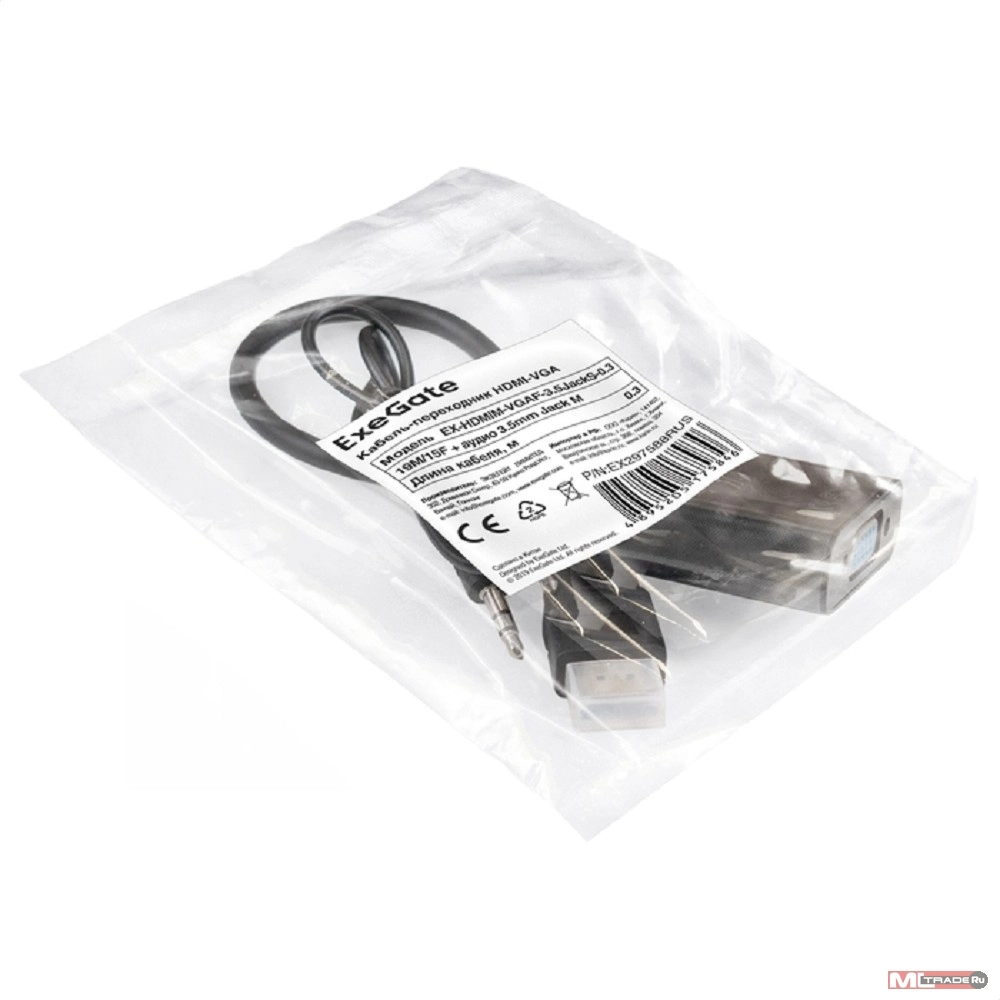 Переходник Exegate EX297588RUS Кабель-переходник HDMI-VGA ExeGate EX-HDMIM-VGAF-3.5JackS-0.3 (19M/15F, 0,3м + аудио 3.5mm Jack M 0,5м) Преобразователь цифрового HDMI сигнала в VGA видео и стерео-аудио