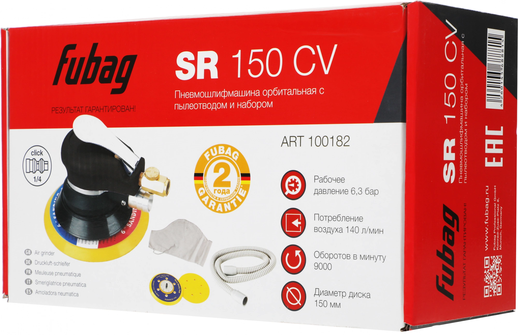 Орбитальная пневмошлифовальная машина SR150CV с пылеотводом и набором.