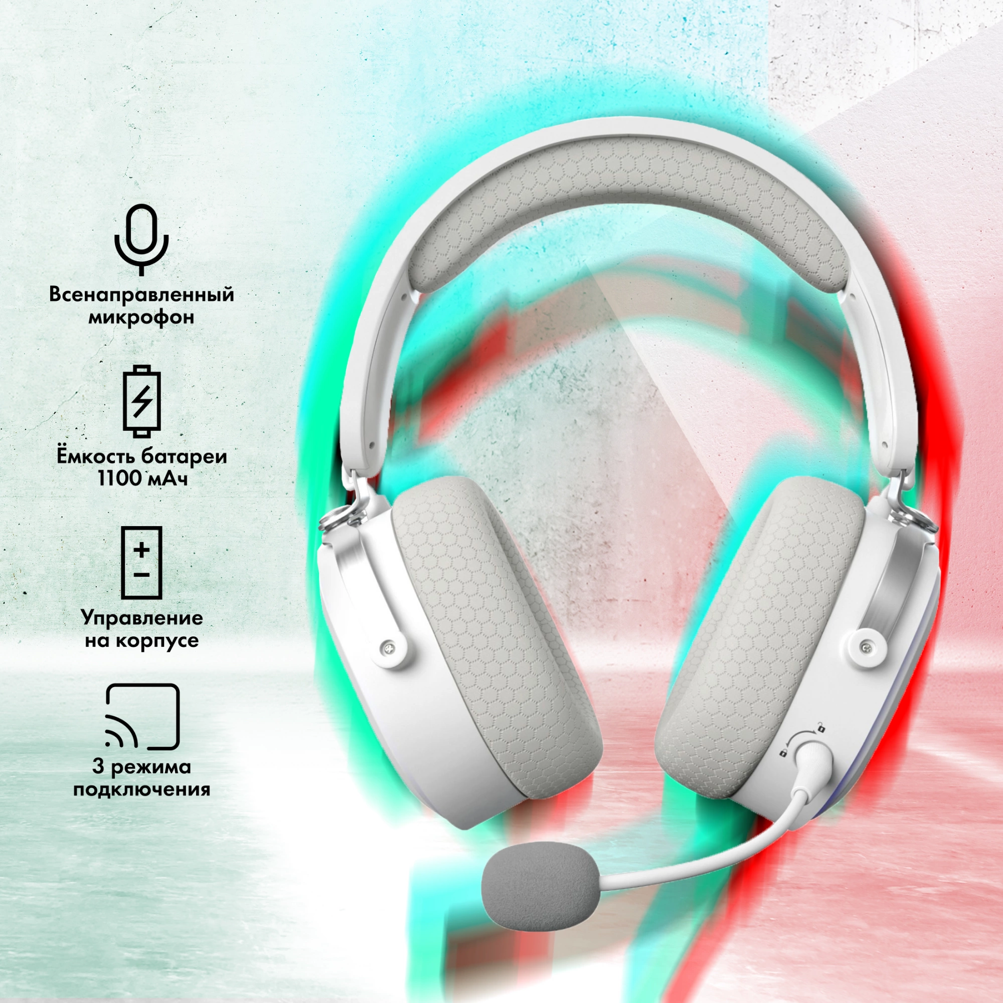 Наушники с микрофоном GMNG GG-HS405W белый мониторные BT/Radio/3.5mm оголовье (1899880)