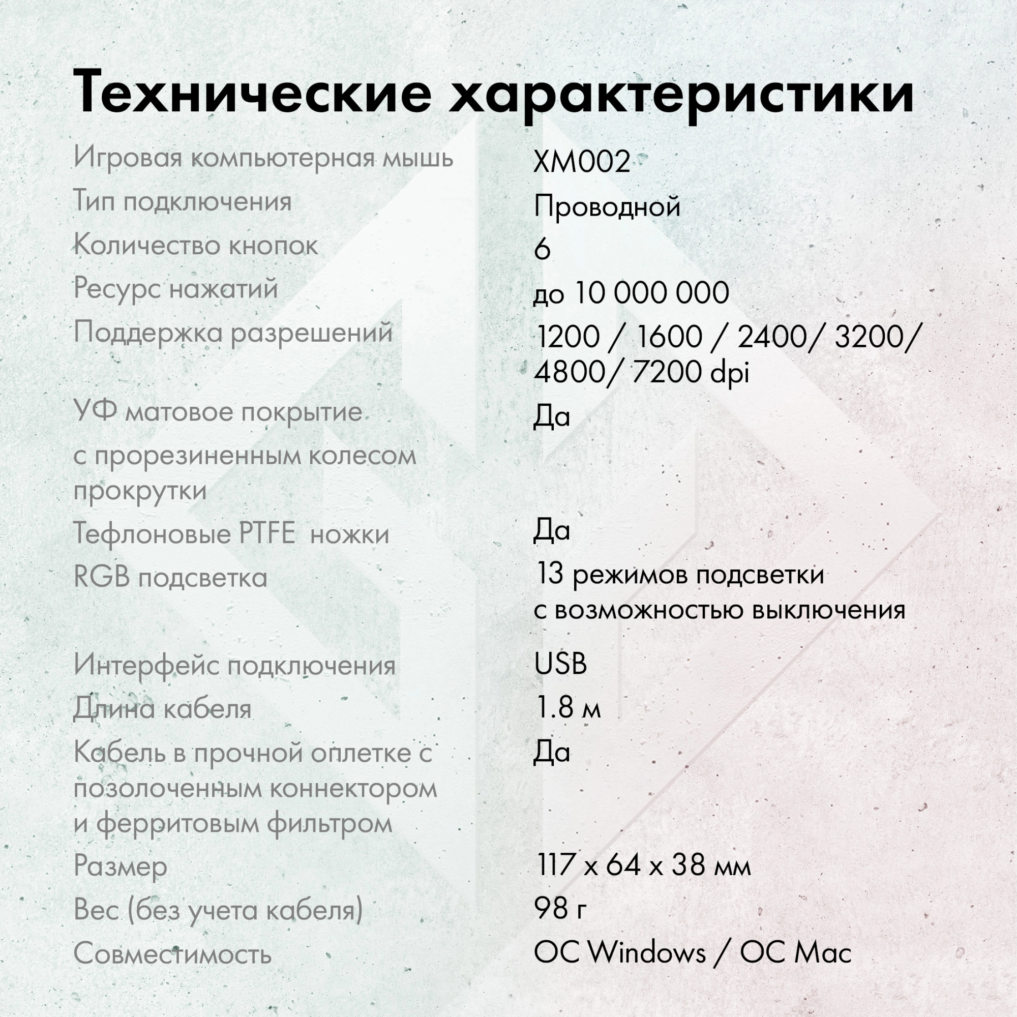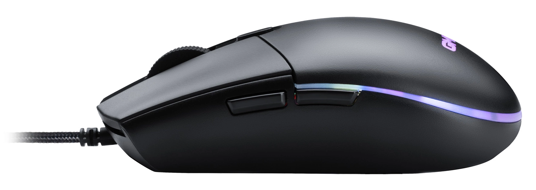 Игровая проводная компьютерная мышь 7200 dpi, UV покрытие корпуса, прорезиненное колесо, RGB подсветка (14 режимов), тефлоновые ножки, плетеный кабель с магнитным фильтром, позолоченный коннектор