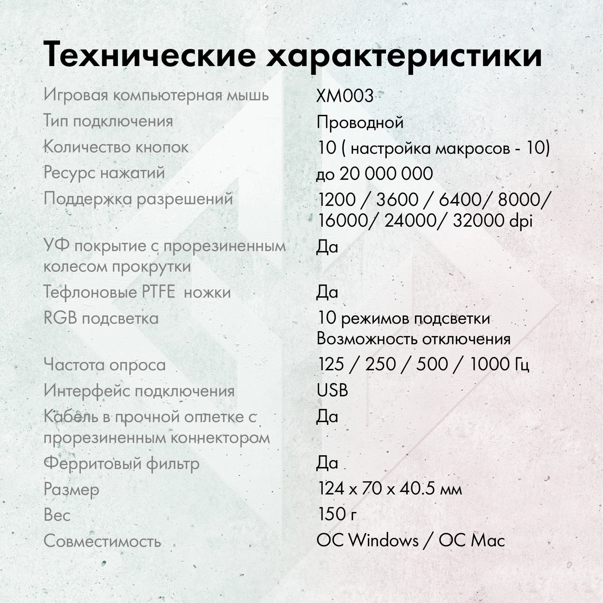Игровая компьютерная мышь с разрешением до 32000 dpi. Прорезиненное колесо, софт-тач покрытие корпуса, RGB подсветка, тефлоновые ножки, плетеный кабель с магнитным фильтром, позолоченный коннектор