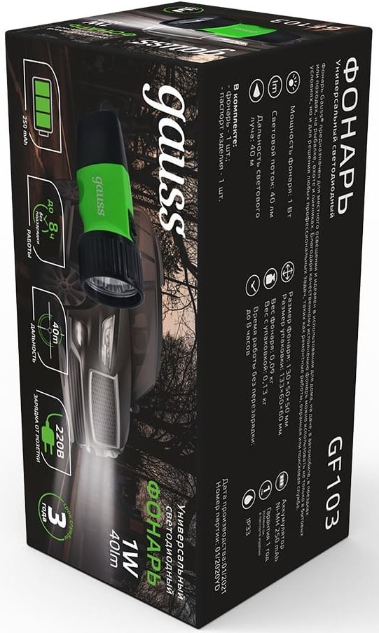 Фонарь ручной Gauss GFL103 черный 1Вт лам.:светодиод. (GF103) | НИКС Екатеринбург