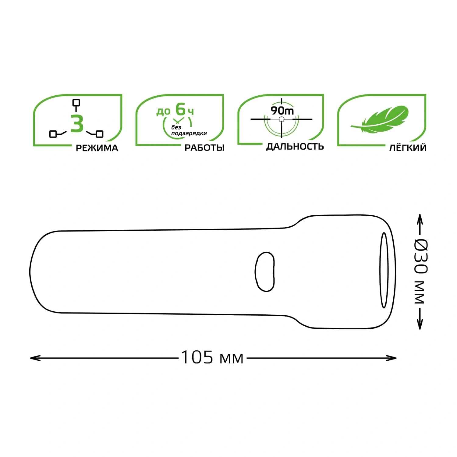 максимальная мощность, приглушенный свет, сигнал SOS