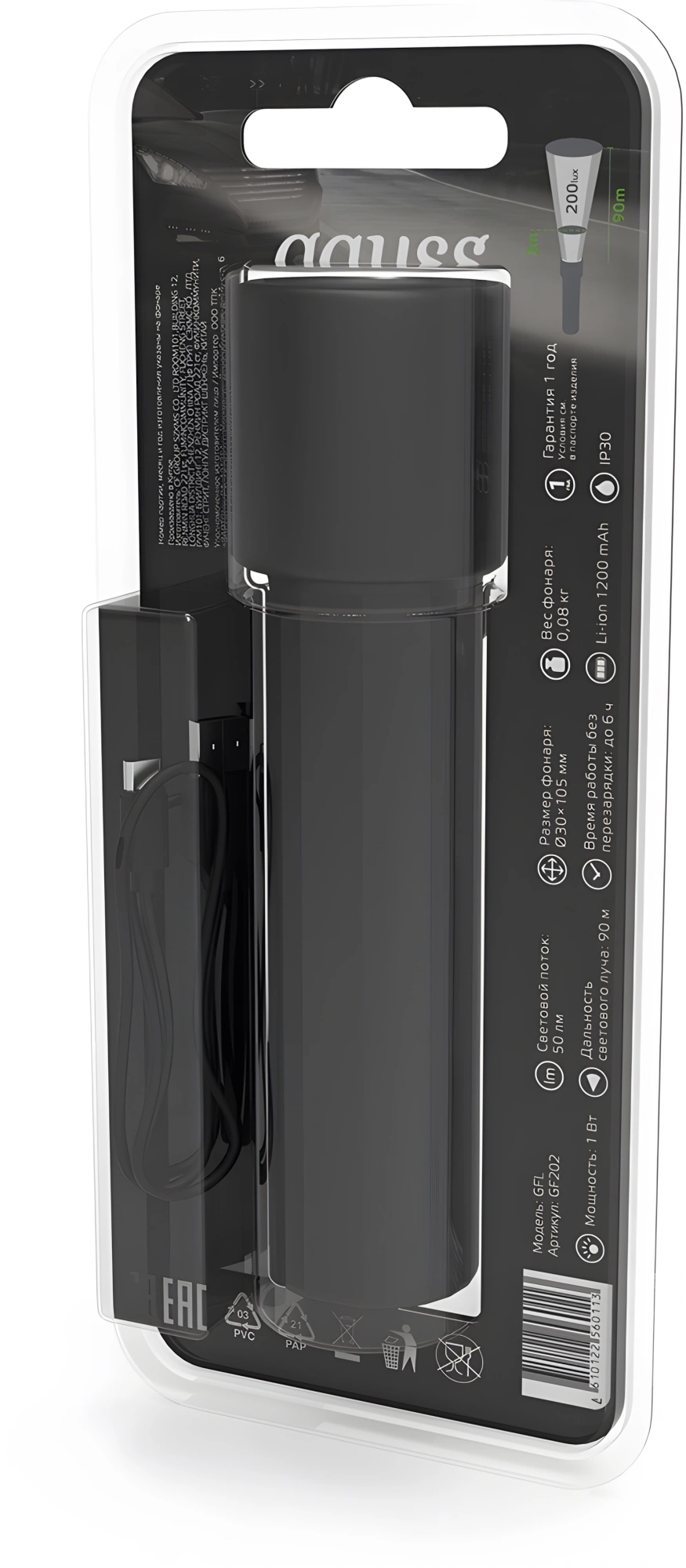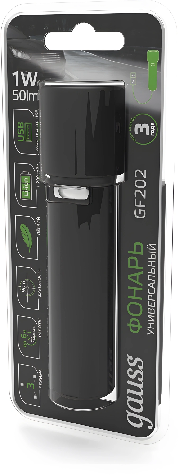 Фонарь ручной Gauss GFL202 черный 1Вт лам.:светодиод. (GF202) | НИКС Екатеринбург