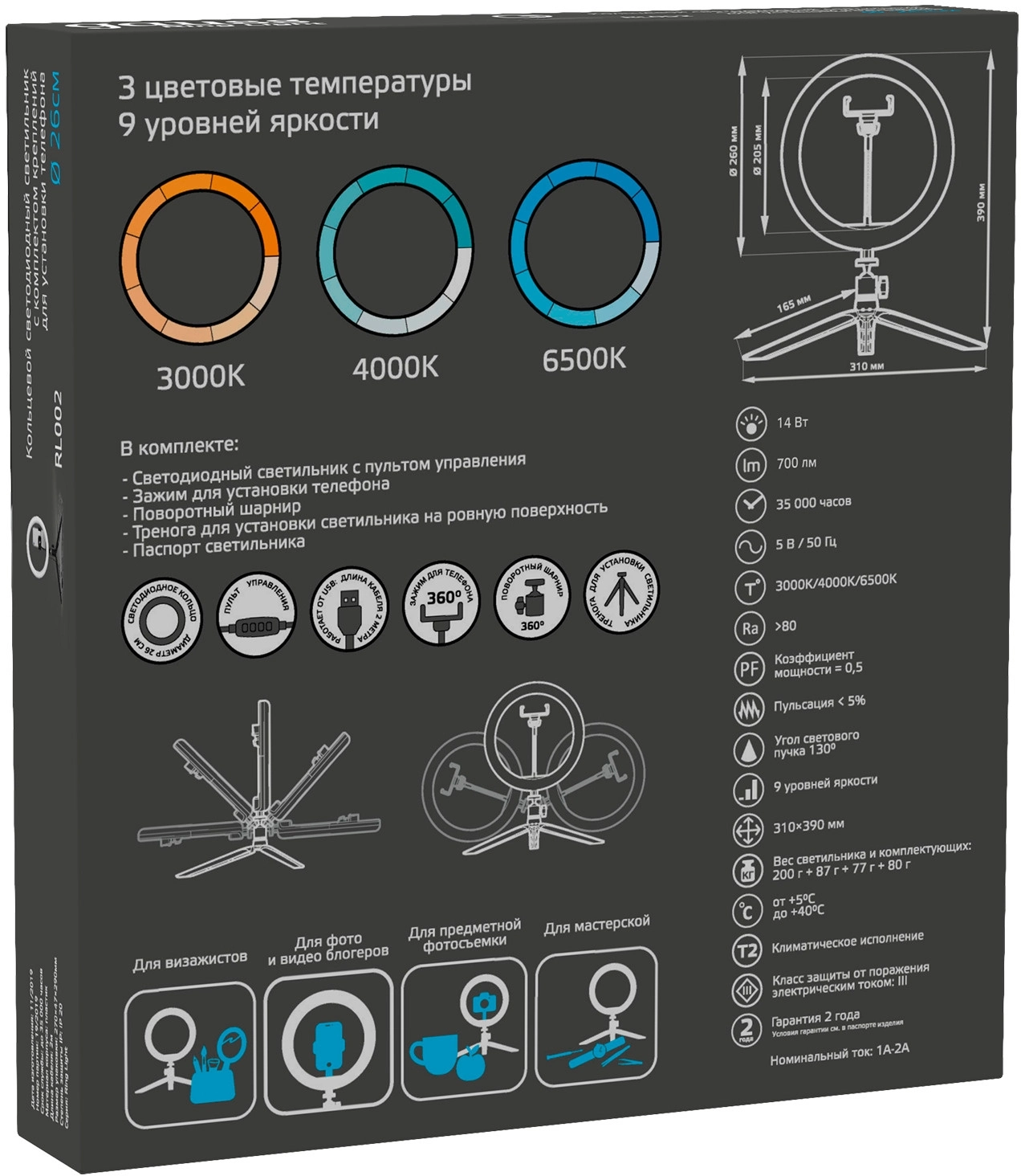 Светильник, зажим для смартфона, тренога, паспорт светильника