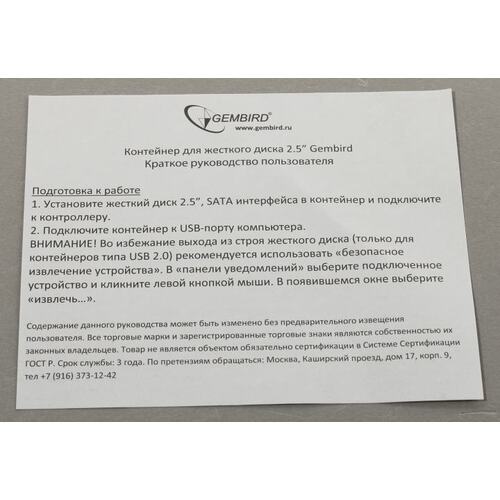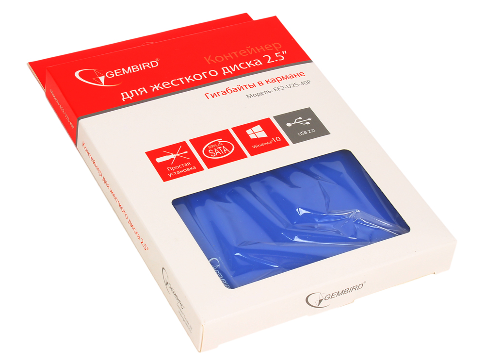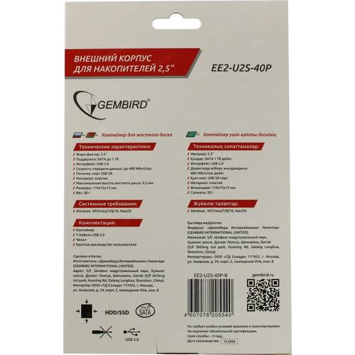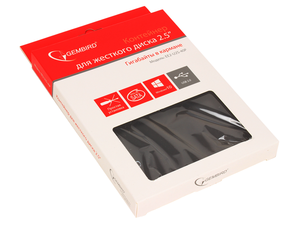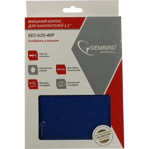 Контейнер для HDD Gembird EE2-U2S-40P Внешний корпус 2.5" Gembird EE2-U2S-40P, черный, USB 2.0, SATA, пластик