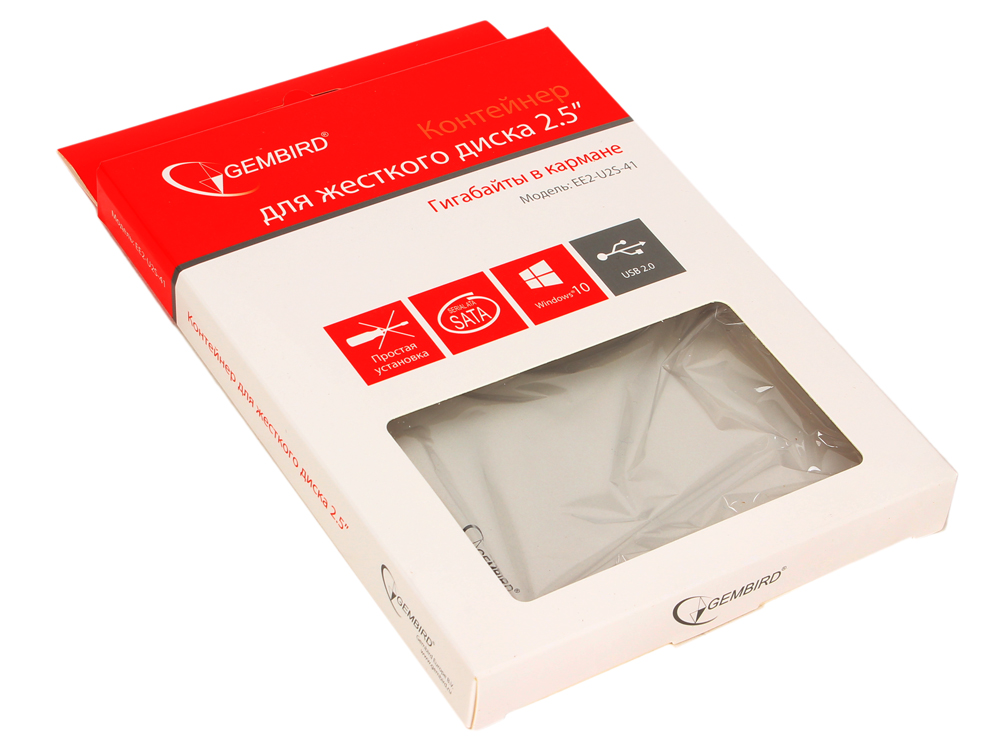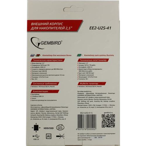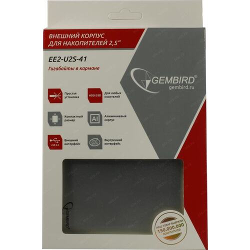 Контейнер для HDD Gembird EE2-U2S-41-S Внешний корпус 2.5" Gembird EE2-U2S-41, серебро, USB 2.0, SATA, металл