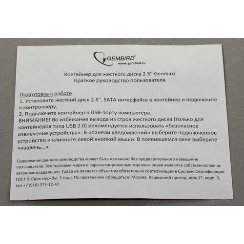 Внешний бокс для 2.5" HDD/SSD (DAS)