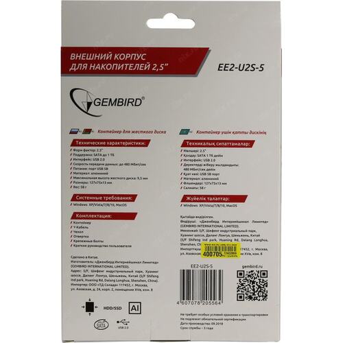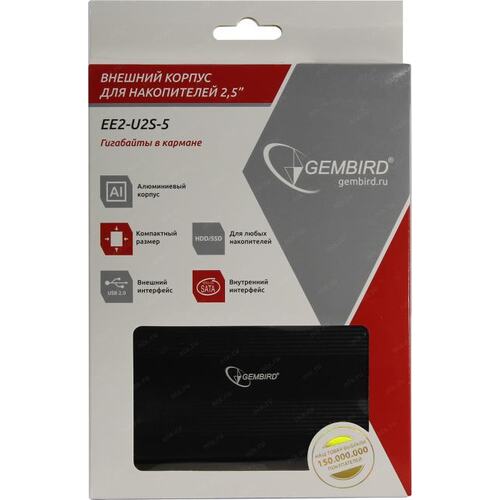 Мобильное шасси Gembird <EE2-U2S-5> (Внешний бокс для 2.5" SATA HDD, USB2.0, Aluminum)