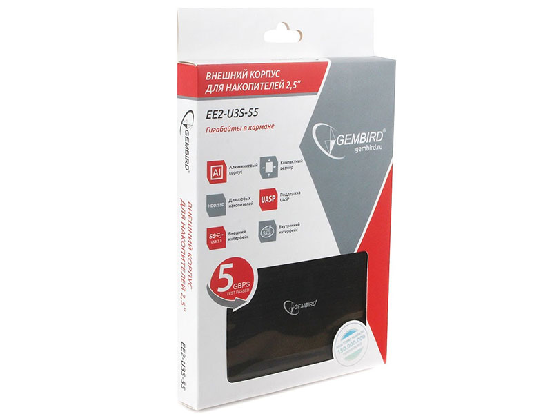 Контейнер для HDD Gembird EE2-U3S-55 Внешний корпус 2.5" чёрный, USB 3.0, SATA, до 2 Тб, алюминий | НИКС Екатеринбург