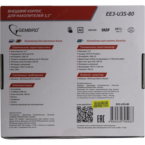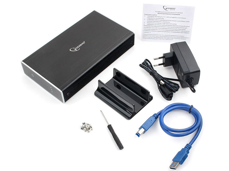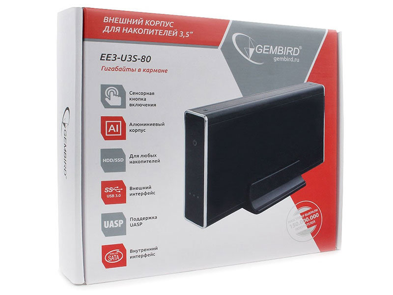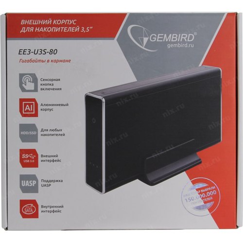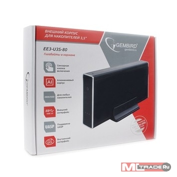 Контейнер для HDD Gembird EE3-U3S-80 Внешний корпус 3.5" чёрный, USB 3.0, SATA, HDD/SSD, до 10 Тб, алюминий