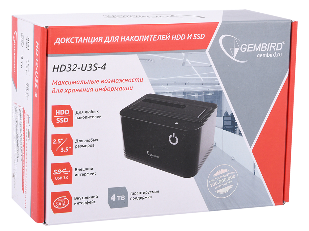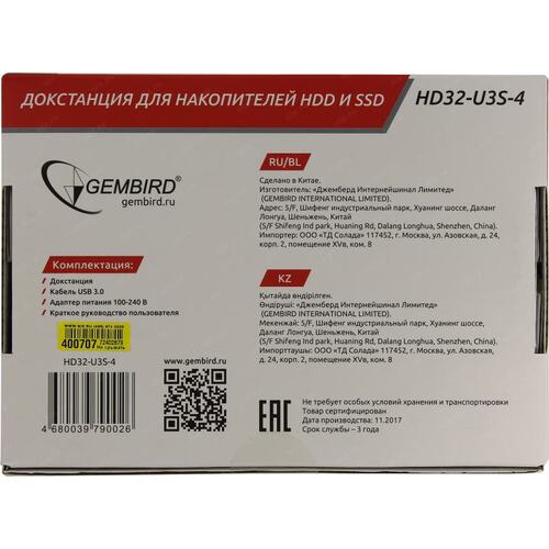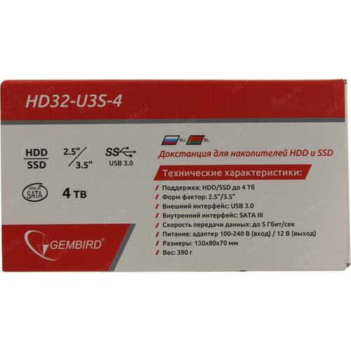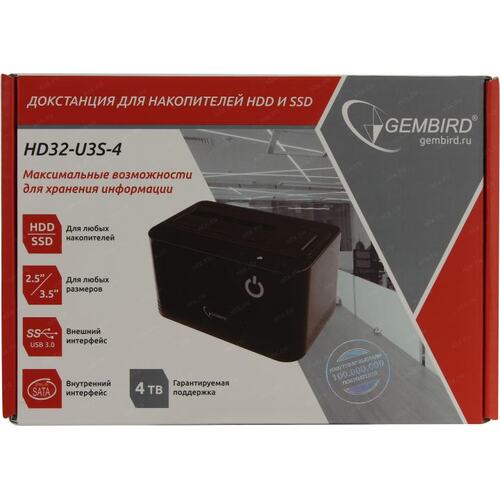 Контейнер для HDD Gembird HD32-U3S-4 Докстанция 2.5"/3.5" черный, USB 3.0, SATA, HDD/SSD