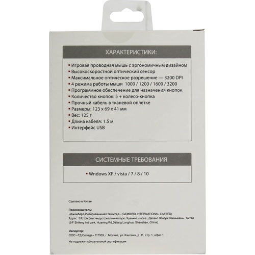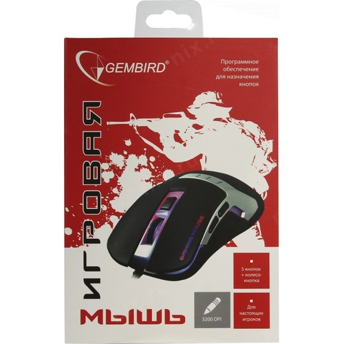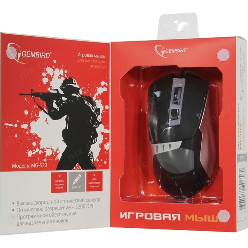 Мышь Gembird MG-520 USB (Мышь игровая, 5кнопок+колесо-кнопка, 3200DPI, 1000 Гц, подсветка, программное обеспечение для создания макросов)