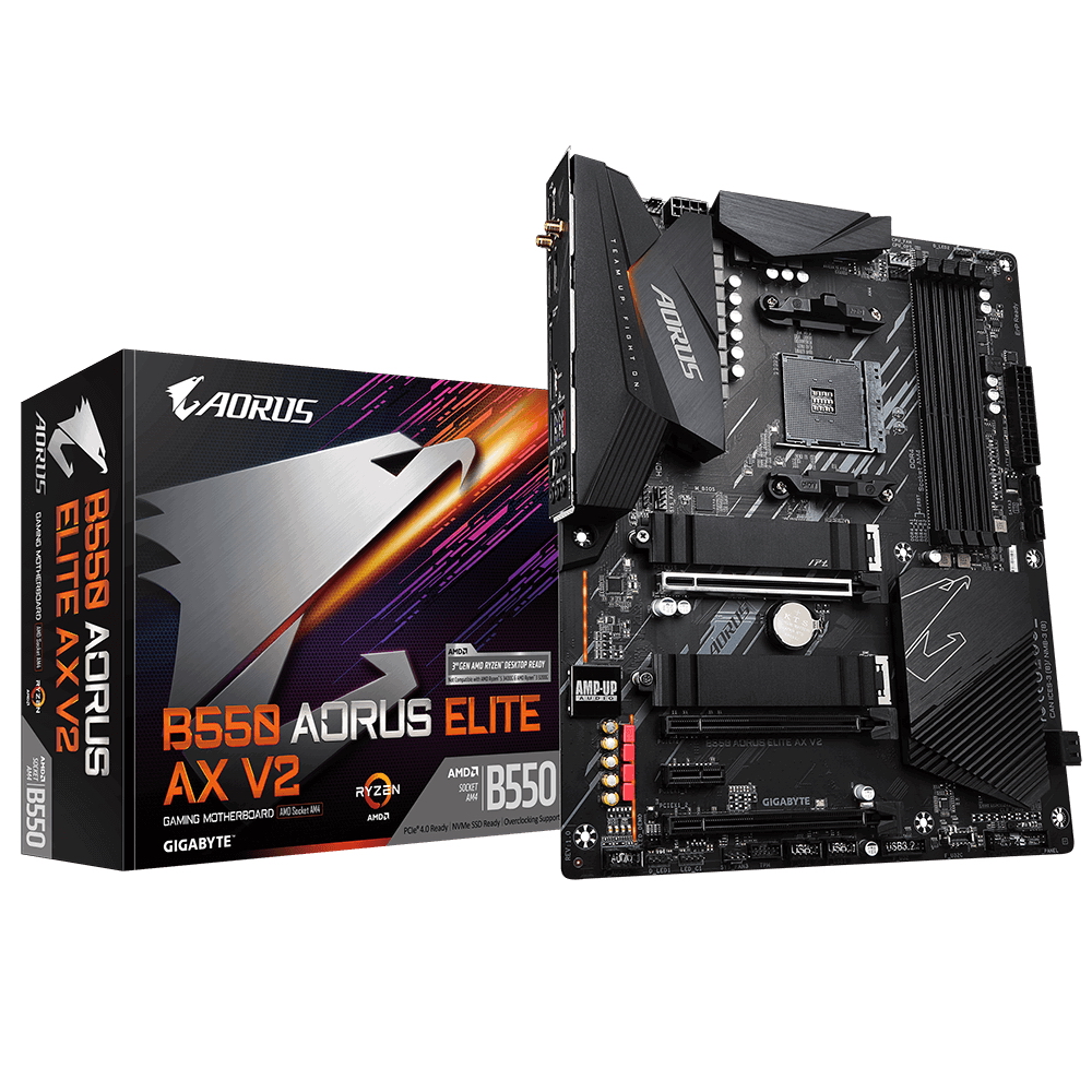 Материнская плата Gigabyte B550 AORUS ELITE AX V2 Soc-AM4 AMD B550 4xDDR4 ATX AC`97 8ch(7.1) 2.5Gg RAID+HDMI+DP | НИКС Екатеринбург