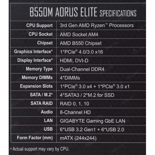 Материнская плата Gigabyte B550M AORUS ELITE Soc-AM4 AMD B550 4xDDR4 mATX AC`97 8ch(7.1) GbLAN RAID+DVI+HDMI