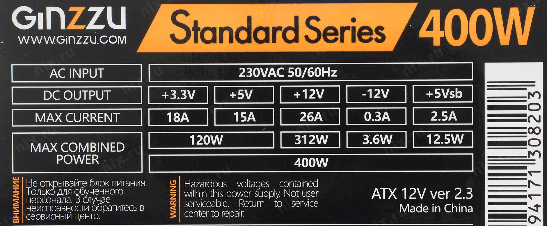 Блок питания Ginzzu SA400 OEM [GinzzuSA400]