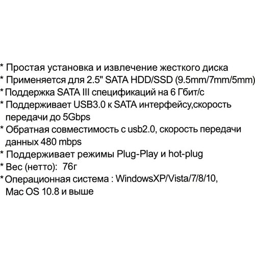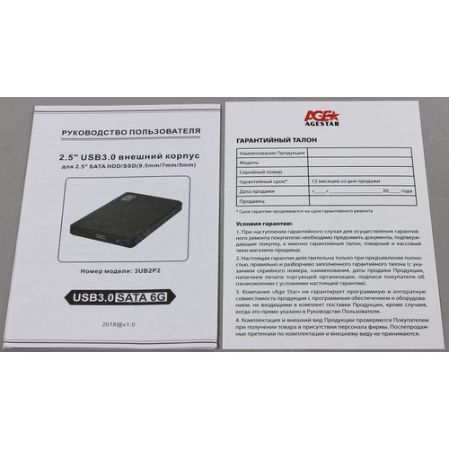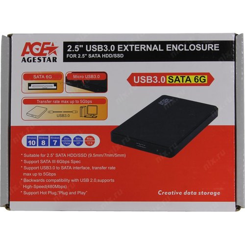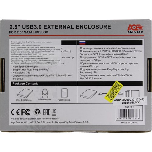 Внешний корпус для HDD AgeStar 3UB2P2 SATA III USB3.0 пластик черный 2.5" 3UB2P2(BLACK)