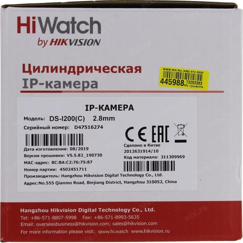 Видеонаблюдение HIWATCH DS-I200(E)(2.8mm), Камера видеонаблюдения IP 1080p, 2.8 мм, белый