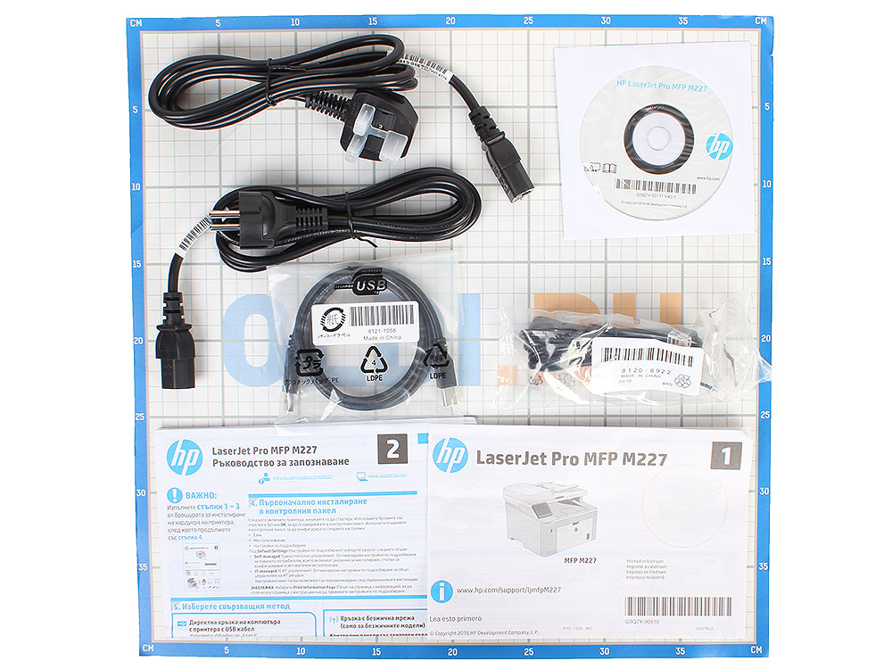 Диск с ПО, Кабель питания, картридж, кабель USB