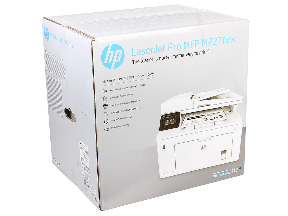 Принтер HP LaserJet Pro M227fdw <G3Q75A> принтер/сканер/копир/факс, A4, 28 стр/мин, ADF, дуплекс, USB, LAN, WiFi (замена CF485A M225dw)