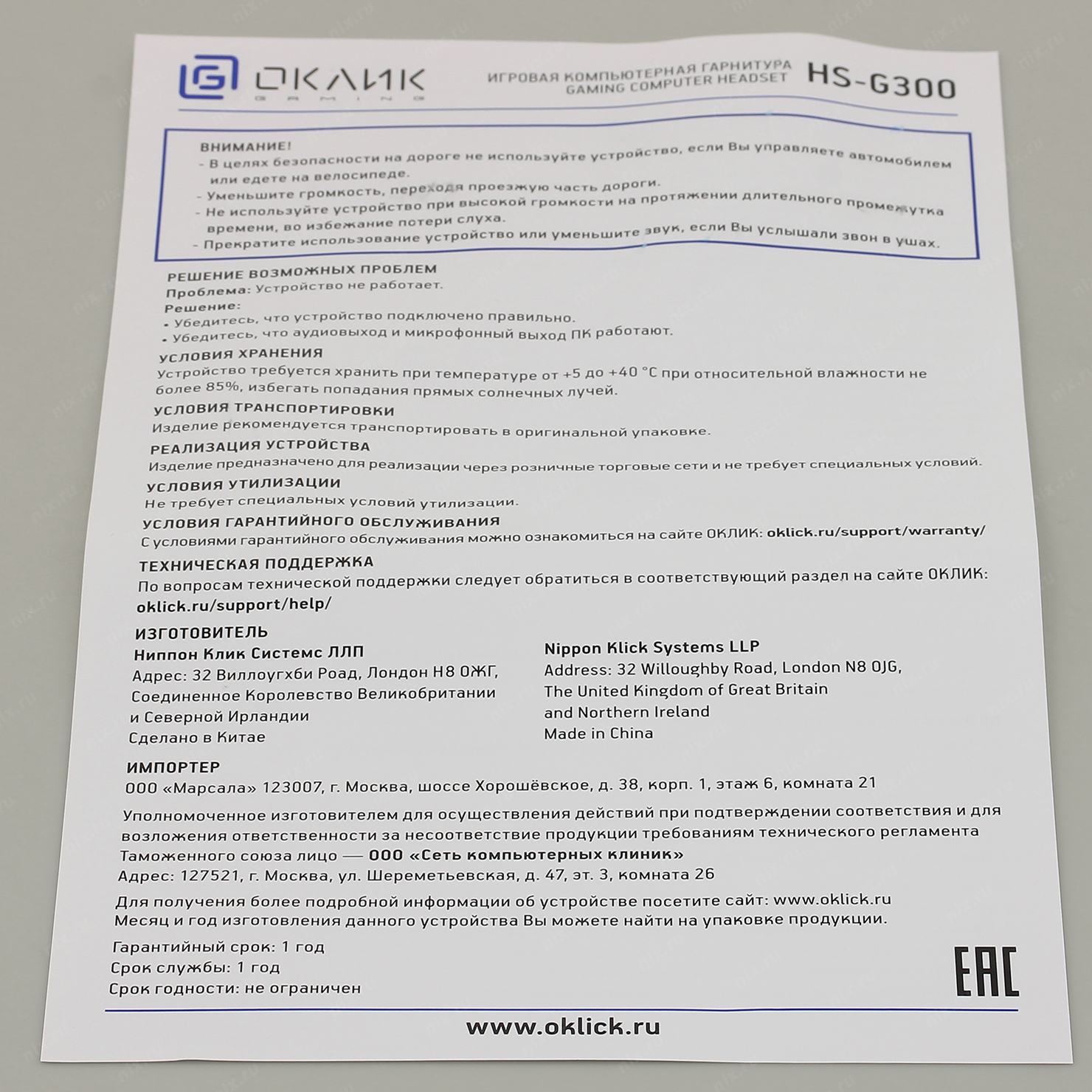 Гарнитура для ПК Oklick HS-G300 ARMAGEDDON черный/красный 2.3м (AH-V1)