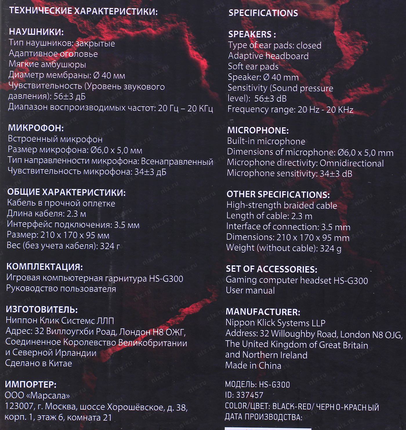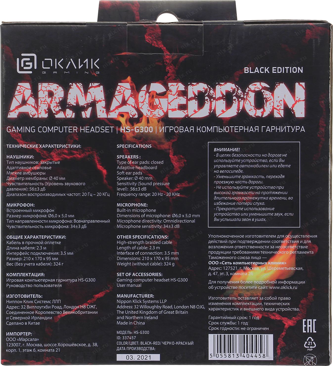 Наушники с микрофоном Оклик HS-G300 ARMAGEDDON черный/красный 2.2м мониторные оголовье (337457) OKLICK | НИКС Екатеринбург