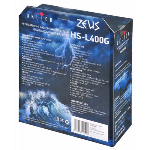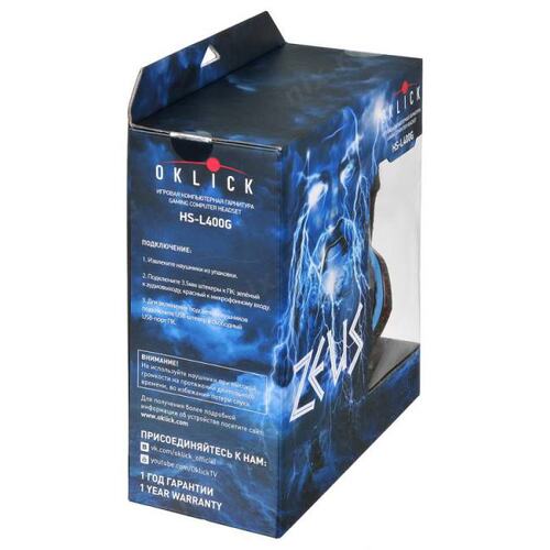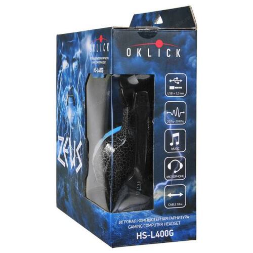 Наушники с микрофоном Оклик HS-L400G ZEUS черный/синий 2.2м мониторные оголовье (359480) OKLICK
