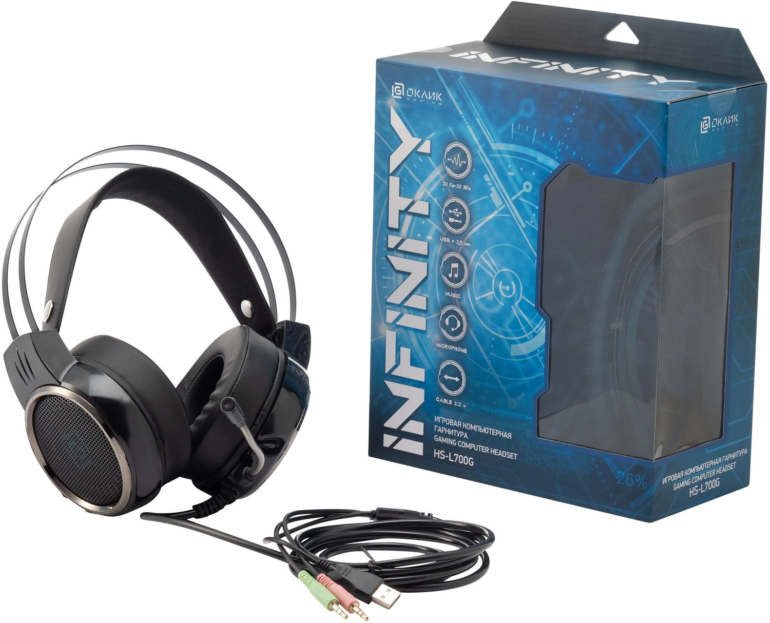 Наушники с микрофоном Оклик HS-L700G INFINITY черный 2.2м мониторные оголовье (1102308) OKLICK