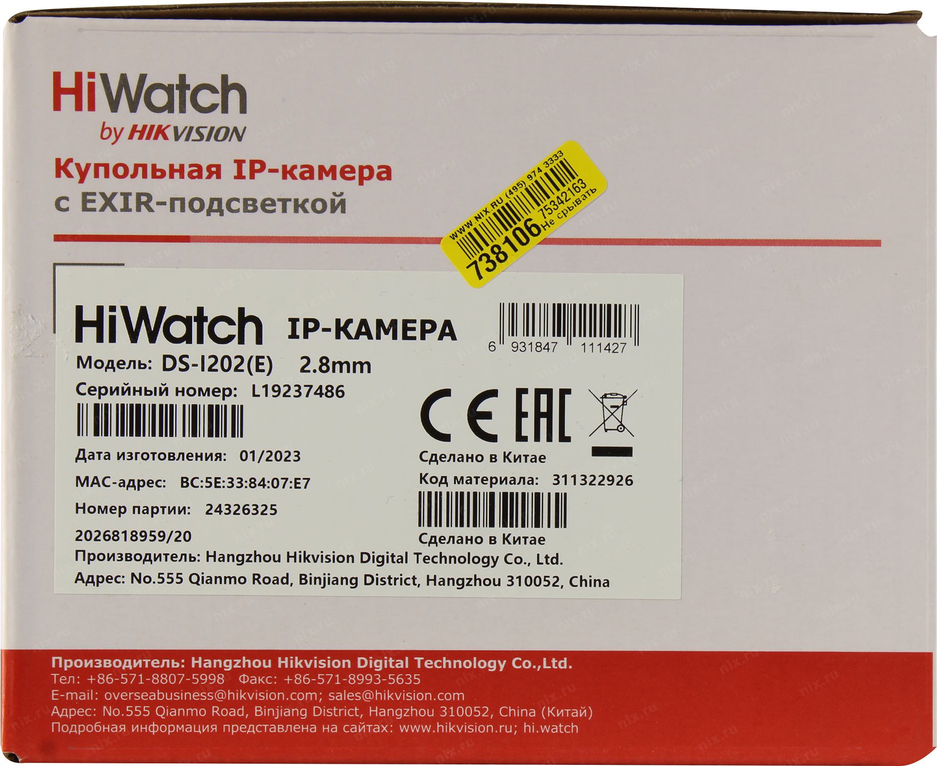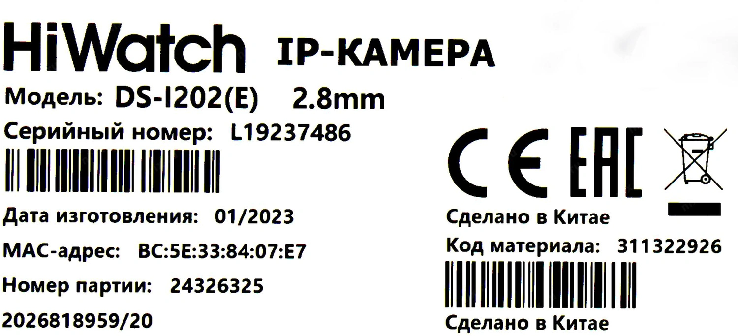 Видеонаблюдение HiWatch DS-I202 (E) (2.8 mm) Видеокамера IP 2.8-2.8мм цветная корп.:белый [DS-I202(E)(2.8mm)]