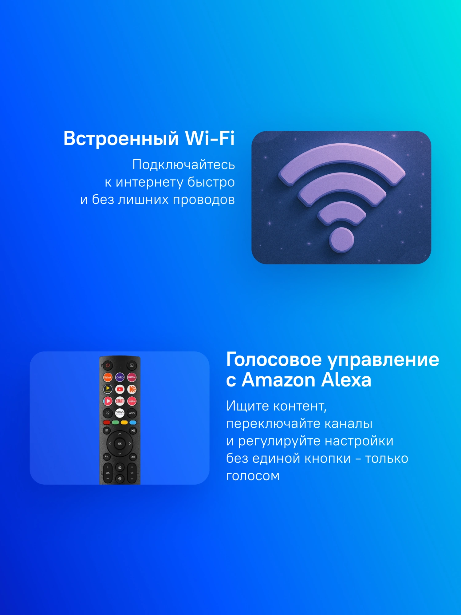 Таймер включения/выключения; Управление голосом; Пульт ДУ