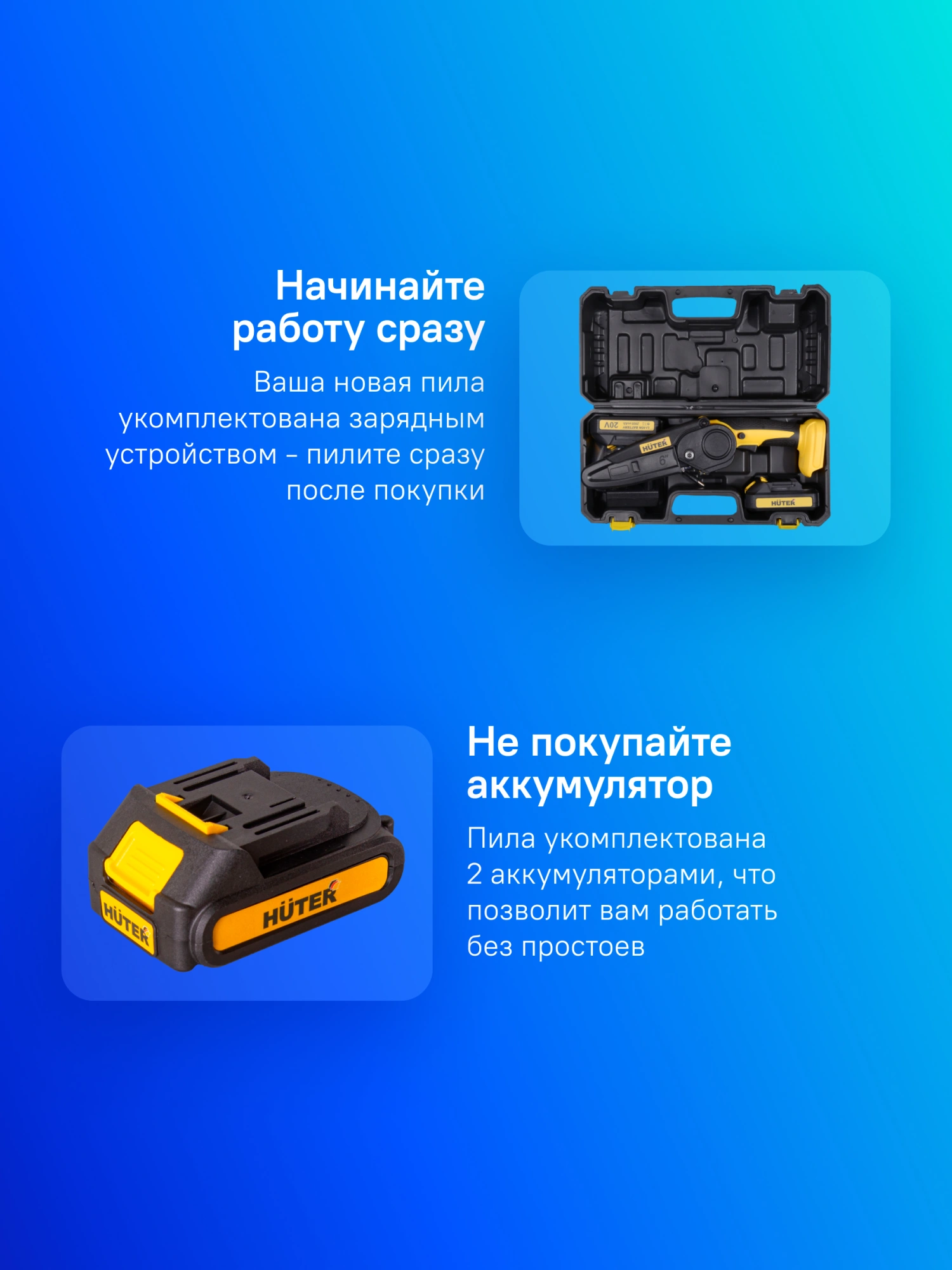 Цепная пила Huter ELS ELS-20-Li-2K аккум. дл.шины:6" (15.2cm) 2аккум. 2Ач ЗУ (70/10/23)