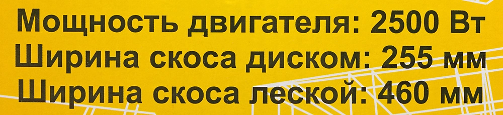 Ширина скоса диском 255 мм. Ширина скоса леской 460 мм