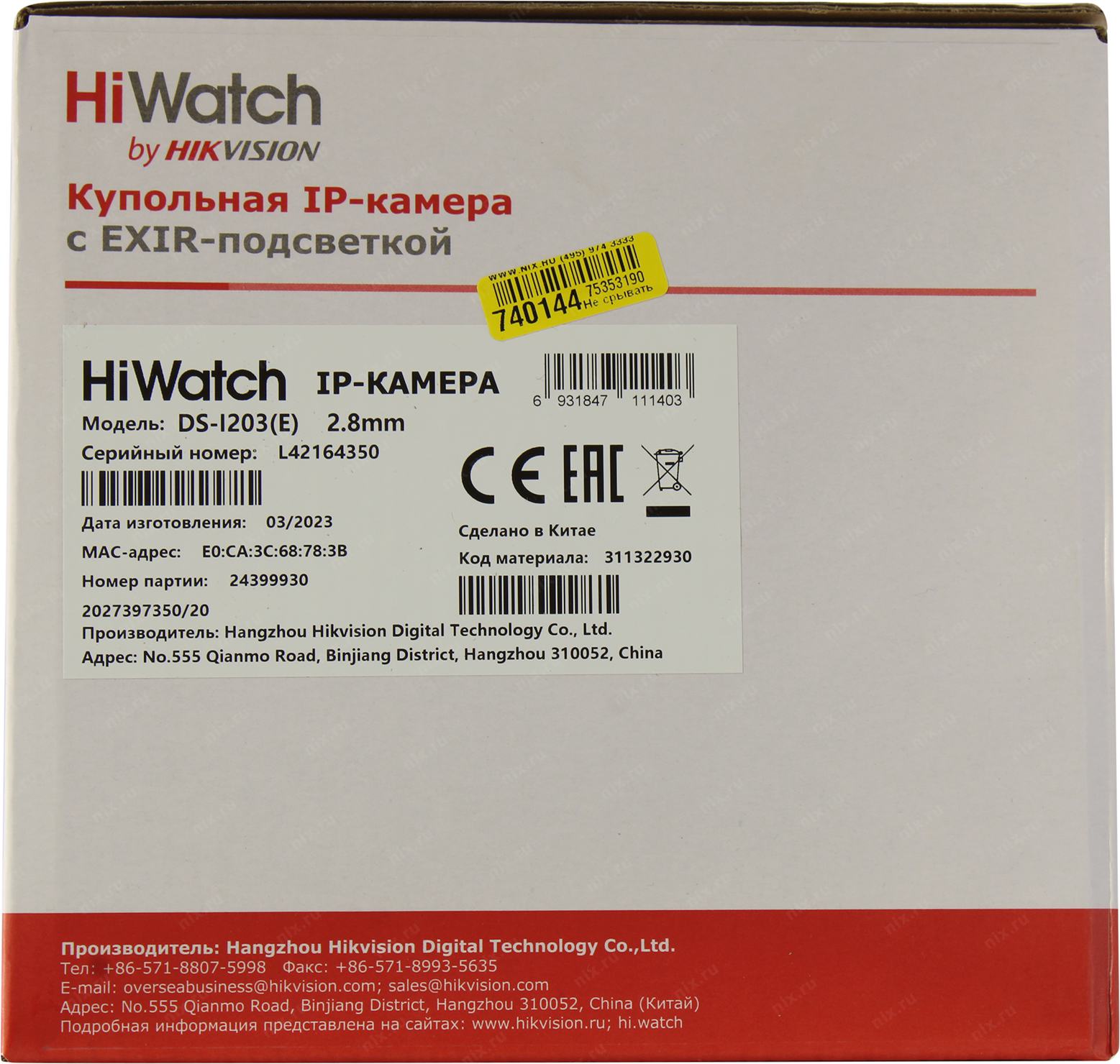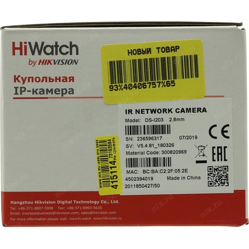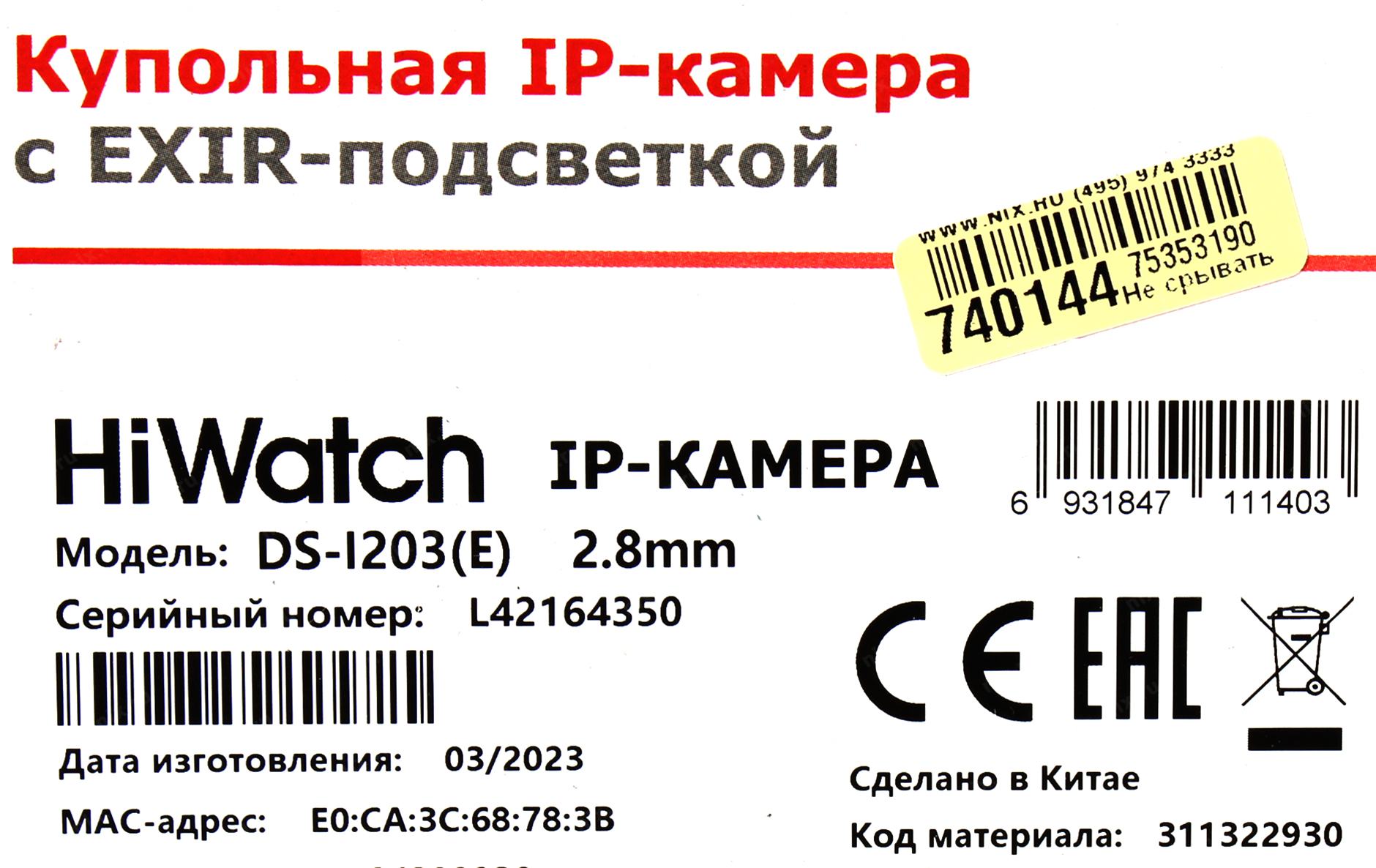 Видеонаблюдение HIWATCH DS-I203(E)(2.8mm), Камера видеонаблюдения IP 1080p, 2.8 мм, белый