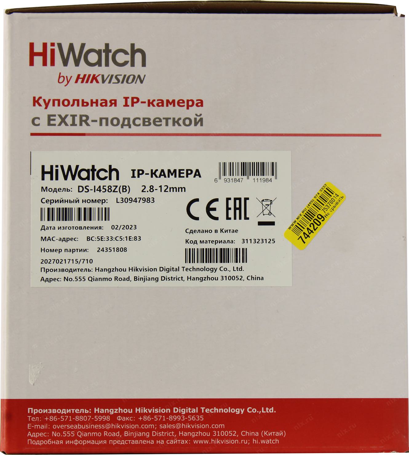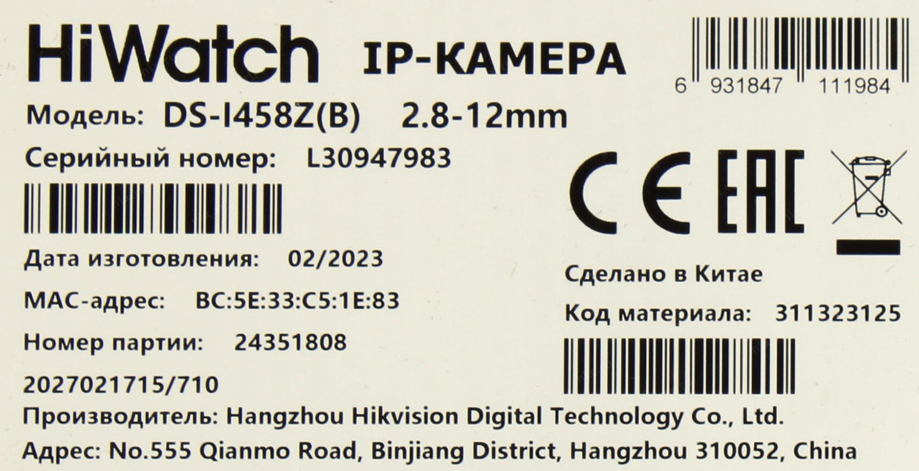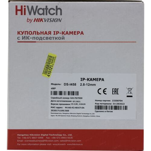 Камера видеонаблюдения IP HiWatch DS-I458Z(B)(2.8-12mm) 2.8-12мм цв. корп.:белый