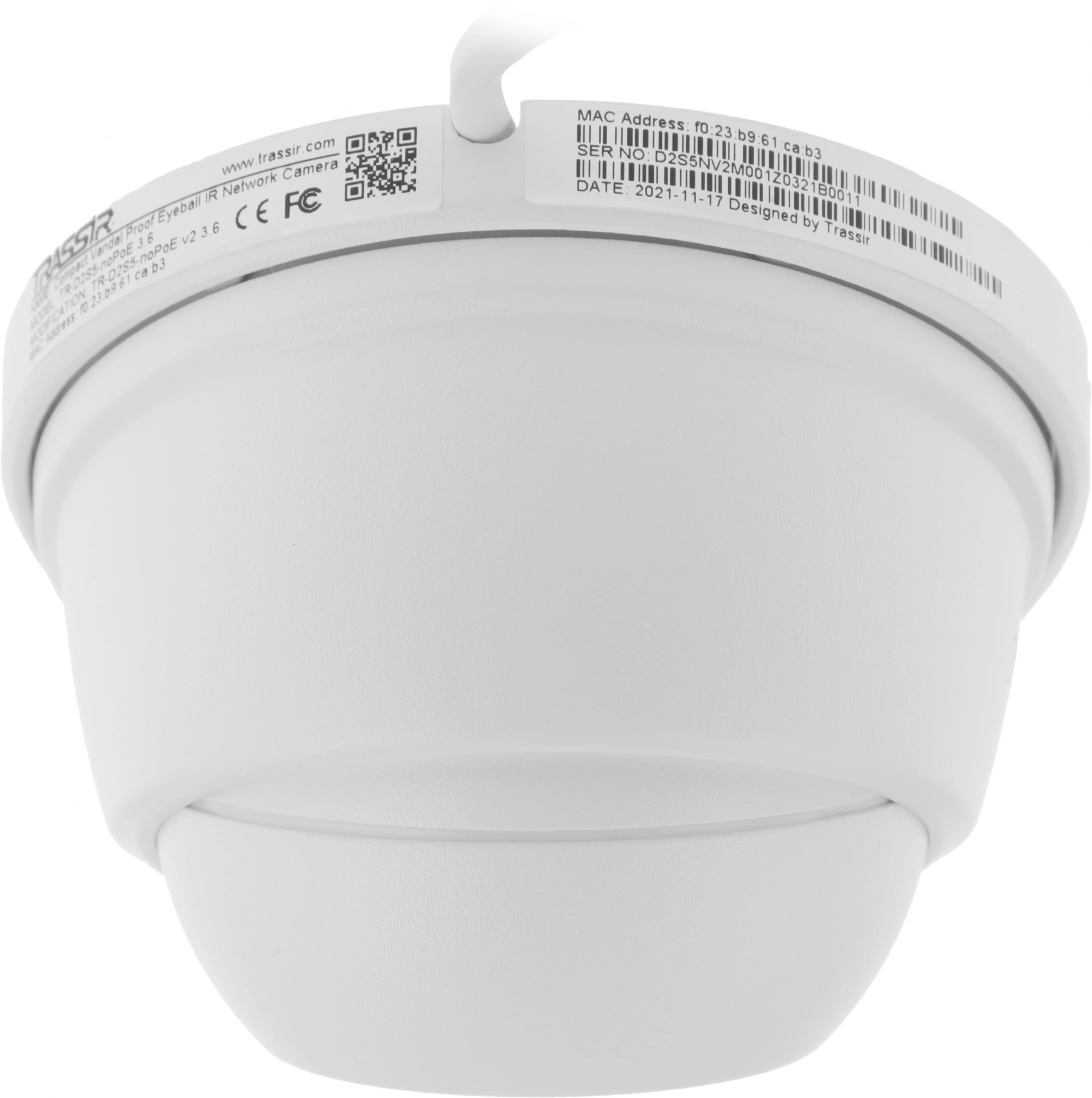 Камера видеонаблюдения IP Trassir TR-D2S5-noPoE v2 3.6-3.6мм цв. корп.:белый