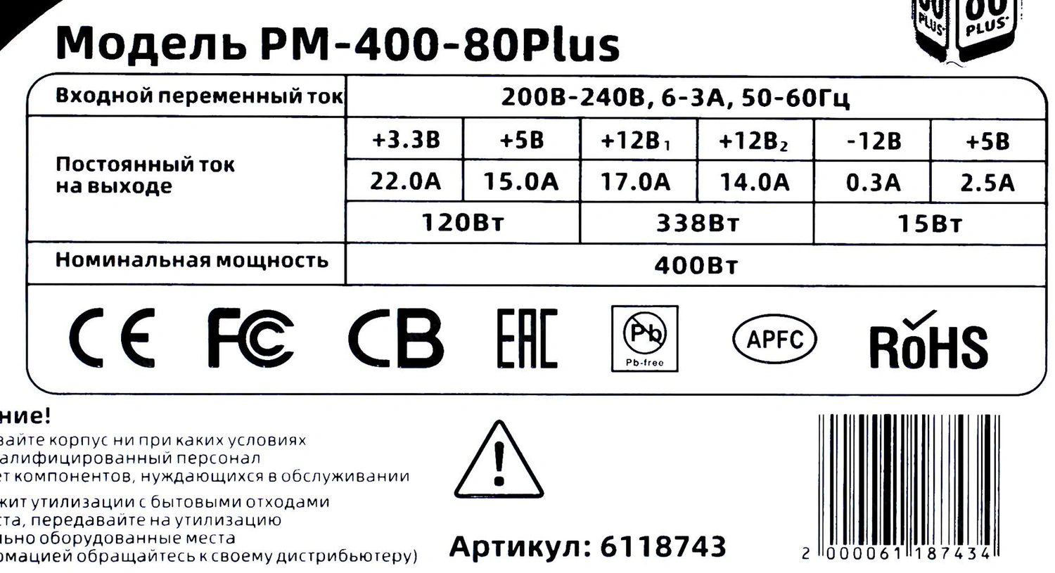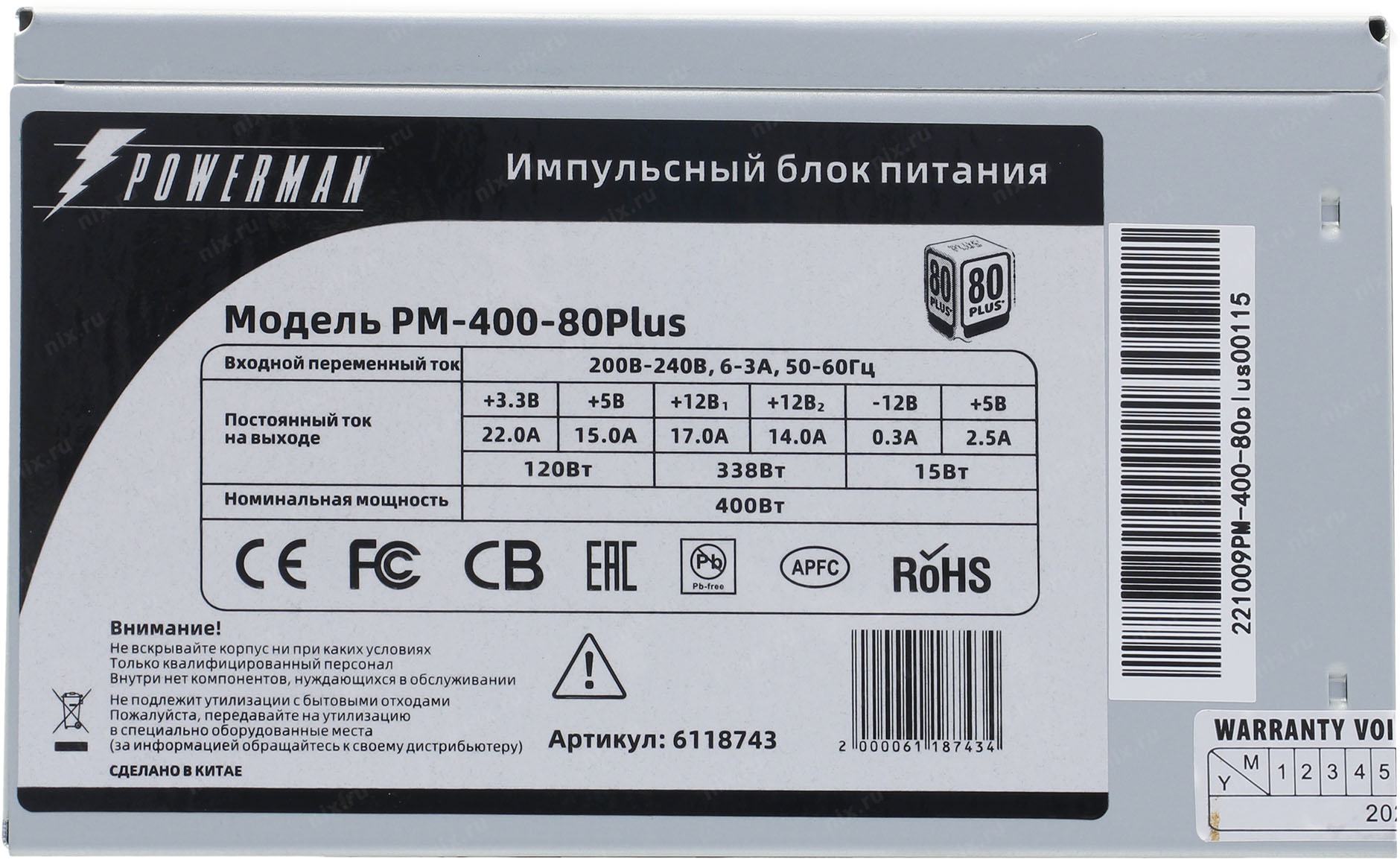 Блок питания Inwin POWERMAN PM-400ATX APFC 80+ [6118743]
